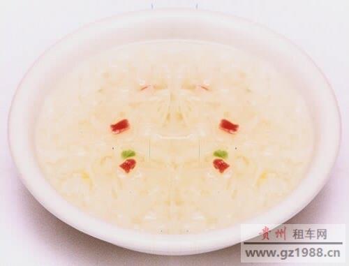 健康提示:贵阳天麻银耳羹特点:软嫩细滑。适合于小伙伴食用。好多吃货开始流口水了吧!那还犹豫什么,到贵州租车网包个车和小伙伴去贵阳享受美味的小吃及多彩的 风光吧。来吧,任性一把:租车去贵阳吃天麻银耳羹去了。