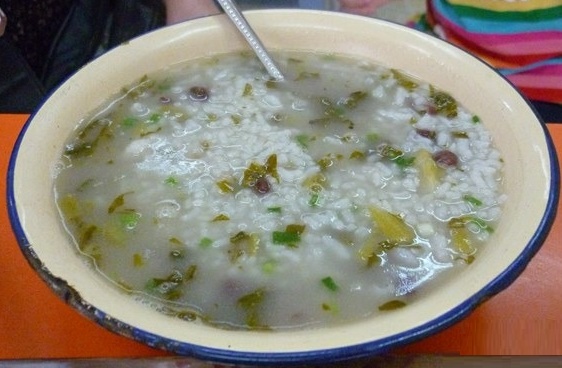 在贵阳街头现在又出现一种快餐饭,叫做“豆米酸菜饭”,想起来好象没什么特别之处,但还真有不少人喜欢,可能是它特别解油去腻的缘故吧。