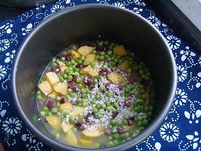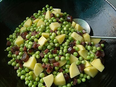 安顺豌豆腊肠洋芋糯米饭制作方法: