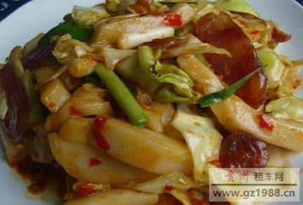 贵阳香肠炒饵块粑也称为炒年糕