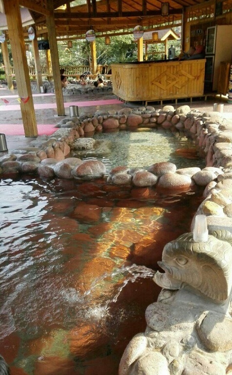 主要有三个泉眼:生活泉、治疗泉、泳池泉。水质无色、无味、无嗅、透明。水质类型属重碳 酸、硫酸钙、镁型,含有30余种微量元素,其中锶、硒、铜、锌、氟、铁、锰、铬、钒等14种矿物元素是人体必需的,具有较高的医疗价值。