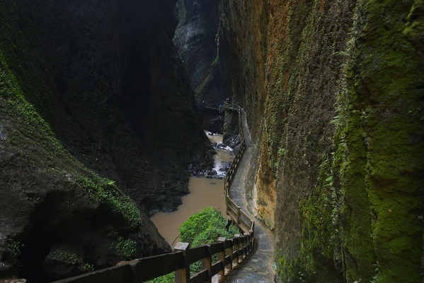 峡谷深200至500米不等,两边悬崖千仞、岩壁绝险。谷内原始森林茂密,飞瀑溪流不绝,、气势磅礴。