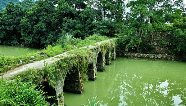 高百米、宽数十米跨江而过的天生桥被专家们誉为“大自然神力所塑的东方凯旋门”,观之令人肃然起敬,为大自然巧夺天工之神力报折服。