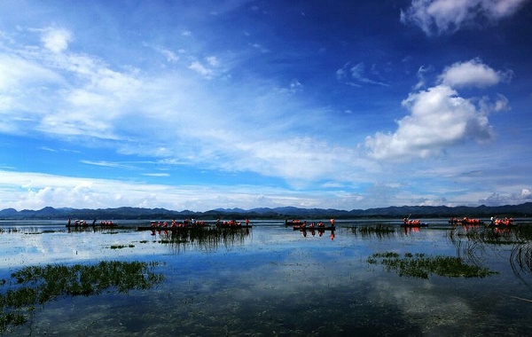 在草海游玩,乘船进入湖中赏景是一个不错的选择,游客可以选择西海码头或者江家湾码头上船。