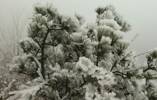 除了感受滑雪之乐,在这里,南方人不必穿着笨重,就能领略到与北国类似的雪国风光——隆冬的玉舍国家森林公园玉树琼枝,粗壮的冰凌挂满山壁,树凇和雾凇随处可见,一片银白世界。