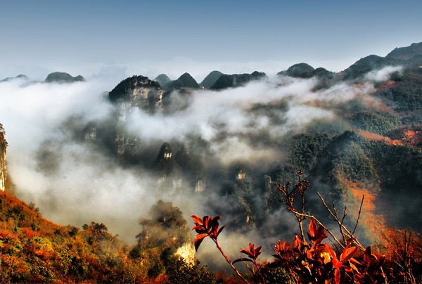 景区内海拔大多在1350—1650米之间,属于典型喀斯特峰丛中槽切谷地形,地文景观丰富,充满神秘的个性色彩,景观独特,移步换景,