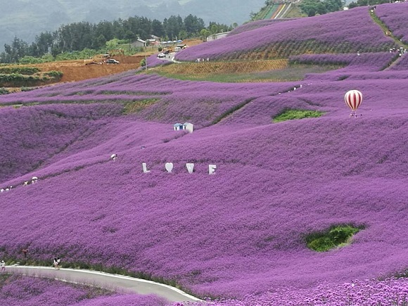 黔北花海,坐落在贵州省桐梓县娄山关镇杉坪村,所以又被称为杉坪花海。于2015年8月正式对游客开放。 一经开放,来自周边省市的游客络绎不绝地来到桐梓观赏花海。作为四季花海,自然四季花开不断。春有艳丽靓眼的映山红红遍山野,夏有层层叠起的薰衣草延绵不绝,秋有热情不减的向日葵让人沉醉,冬有片片樱花让花海美丽再续。