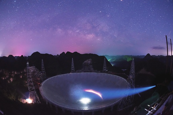 中国天眼的建成,使我国形成具有国际先进水平的天文观测与研究平台,为我国开展"暗物质"和"暗能量"本质、宇宙起源和演化、太空生命起源和寻找地外文明等研究活动提供重要支持。
