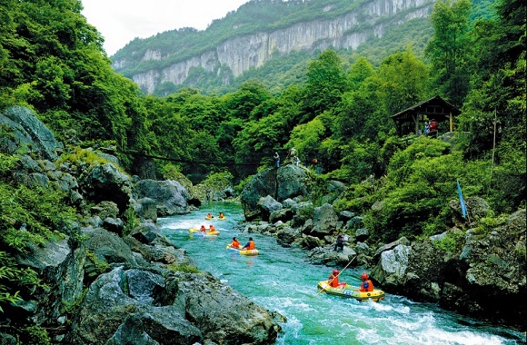 公园景区现已开发十八点四公里,旅游者可顺江在碧玉般的江水中进行惊险刺激的漂流,也可漫步于峭壁栈道,浓荫小路,还可穿越典型的喀斯物原始森林。