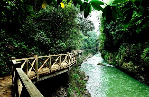 从龙门桥到喇 叭口,水流舒缓;从喇叭口到锣鼓村则激流险滩多,颇具刺激性,水也更清澈。到了锣鼓冲,又有竹筏、独木舟和摩托艇供你选择作水上游。