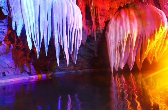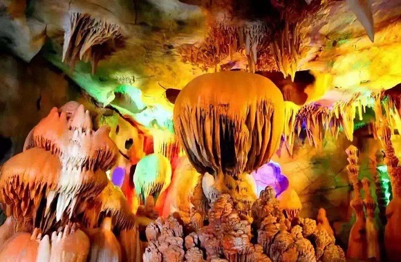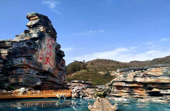 溶洞景区九仙洞天,是典型的地底喀斯特侵蚀风貌,九仙洞天在7亿年前的震旦纪处于稳定的陆源滨海环境。