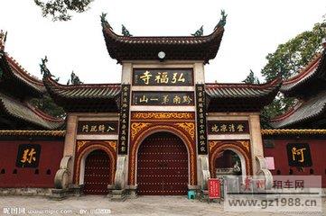 沿“九曲径”登山可到达弘福寺。弘福寺建于清代初期,是一个具有殿、堂、庙、廊齐备的古建筑群。登上山顶望筑亭,贵阳市全景尽入眼帘。