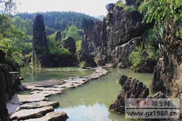 天星桥景区在黄果树瀑布下游6公里处,分为天然盆景区、天星洞和水上石林三大区。景区集山、水、林、洞为一体,美不胜收,被誉为“千古绝画”、“万顷盆景”。 天星洞