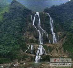 滴水滩瀑布在黄果树瀑布以西六公里,这里有二条对峙的险峻山岭―关索岭和大坡顶,是一个深达七百 余米的峡谷
