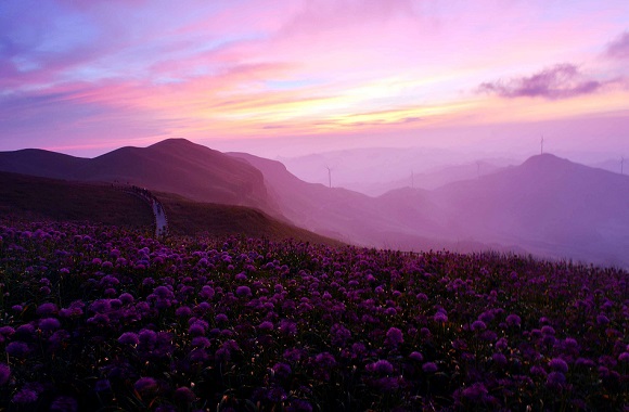 大韭菜坪位于毕节市赫章县兴发苗族彝族回族乡,是世界上最大面积的野韭菜花带、全国唯一的野生韭菜花保护区。