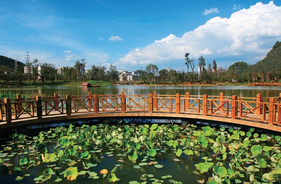 花果园湿地公园位于大贵阳城市的核心地带,周边环抱相拥的是植被繁茂的云贵山等三座山。