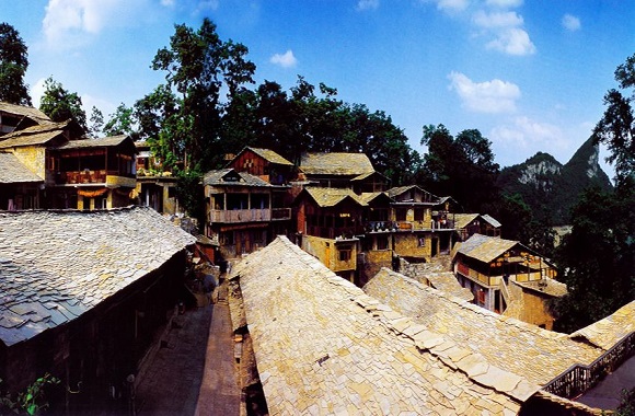 三面环水的镇山村,是布依族人用石板垒砌起来的山寨,一层层石板房依山就势而建,靠山面的寨口建有石城墙和城门,恍如一座中世纪的古城堡。在镇山村,可以作客布依人家,品尝布衣族的风味饭菜,看布依族的歌舞表演。
