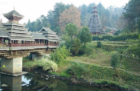 小车河城市湿地公园的北广场有20000多平方米,广场上临樱花大道,下接小车河,广场古树参天,其周边连片的五颜六色的鲜花成为壮美的花海,花海与河水相互辉映,俨然成为一幅美丽的风景画。该桥是公园里独具特色的景点之一,它是按照侗乡风雨桥桥型建设的,该风雨桥建筑集桥、廊、亭三者于一身,长43.8米,宽6米,其中,桥中间的亭子有5层,桥两端的亭子有3层,亭子里,绘有少数民族特色的歌舞图画。据悉,该桥所用圆木柱130余根皆是杉木,大的树径有50厘米,长的有14米。在风雨桥的旁边,还有侗族的鼓楼及苗寨式的吊脚楼,站在风雨桥上,还能欣赏一旁美丽的田园风光。
