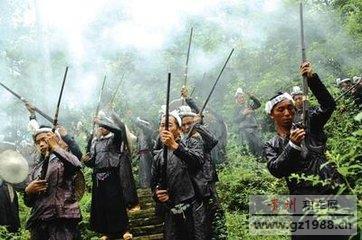 4、有迎宾表演(打枪,敬酒,满15人有景区导游讲解),广场上有岜沙风情的舞蹈表演,很有特色。树林里,有互动节目,如树神祭司,当地婚礼,岜沙男人镰刀剃头。很精彩!