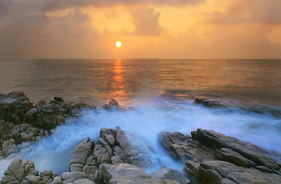 日照,山东省地级市,位于黄海之滨、山东半岛东南侧翼,东隔黄海与日本、韩国相望,西靠临沂,北连青岛、潍坊,南接江苏省连云港,全市陆域面积5310平方千米、海域面积6000平方千米,下辖东港区、岚山区、莒县、五莲县2区2县以及日照经济技术开发区和山海天旅游度假区,有55个乡镇、街道,1944个村居,2016年末户籍总人口299.72万人。