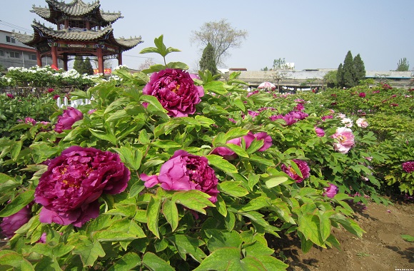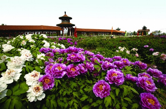 曹州牡丹园座落于菏泽市牡丹区,紧靠220国道、日东高速菏泽出口处,距市中心约3千米,是菏泽面积最大、品种最多的牡丹园,国家AAAA级旅游景区。全园包括五个大田牡丹观赏区:主题牡丹观赏区、曹州牡丹园古谱区、桑篱园古谱花田区、牡丹芍药科研展示区、获奖牡丹花田和湖山景观区、野趣水景区、世界国花园景区、四季牡丹景区、十二花神景区等十二大景区。园内景点众多,其中南部的国花馆是国内唯一的牡丹主题博物馆,北部的牡丹四季温室为国内唯一可四季观赏牡丹的温室。 [40]