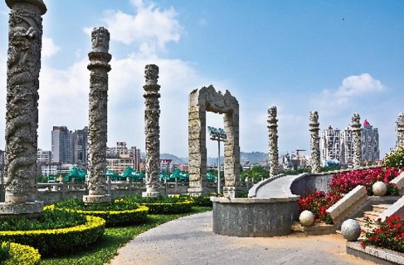 五泉山公园 五泉山公园占地26万平方米,因有惠、甘露、掬月、摸子、蒙五眼泉水而得名,史有鞭响泉涌传说。蒙、惠东、西二泉,在五泉山两侧,有水从缝中流出,形成瀑布,俗称东、西"龙口"。