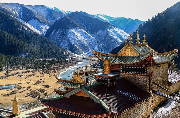 该景区位于壤塘、阿坝、马尔康三县交界处,距县城80公里。